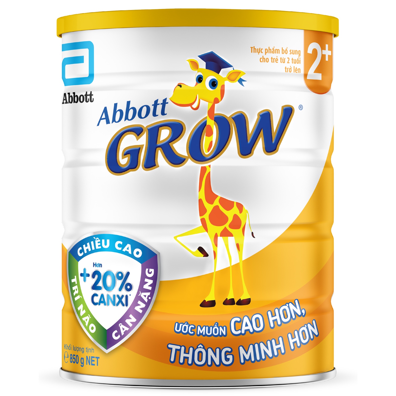 Sữa Abbott GROW 2+ 850g với hệ dưỡng chất G-Power giàu các dưỡng chất và protein chất lượng cao, đủ 9 acid amin thiết yếu, giúp trẻ từ 2 tuổi trở lên phát triển tốt về thể chất và trí não.